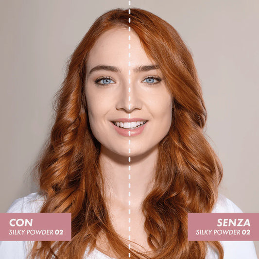 Ciprie naturali per un finish opaco e setoso, che fissa il trucco e lascia la pelle liscia e luminosa.