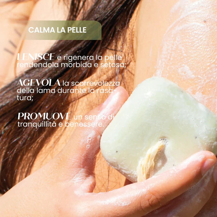 Inumidisci il panetto sotto l'acqua corrente, strofinandolo delicatamente tra le mani o su una spugna. Applica la schiuma così ottenuta sulla zona da trattare. Al termine, procedi con un accurato risciacquo. Per una conservazione ottimale, riponi il panetto fuori dal diretto flusso d'acqua o su un portasapone asciutto.
