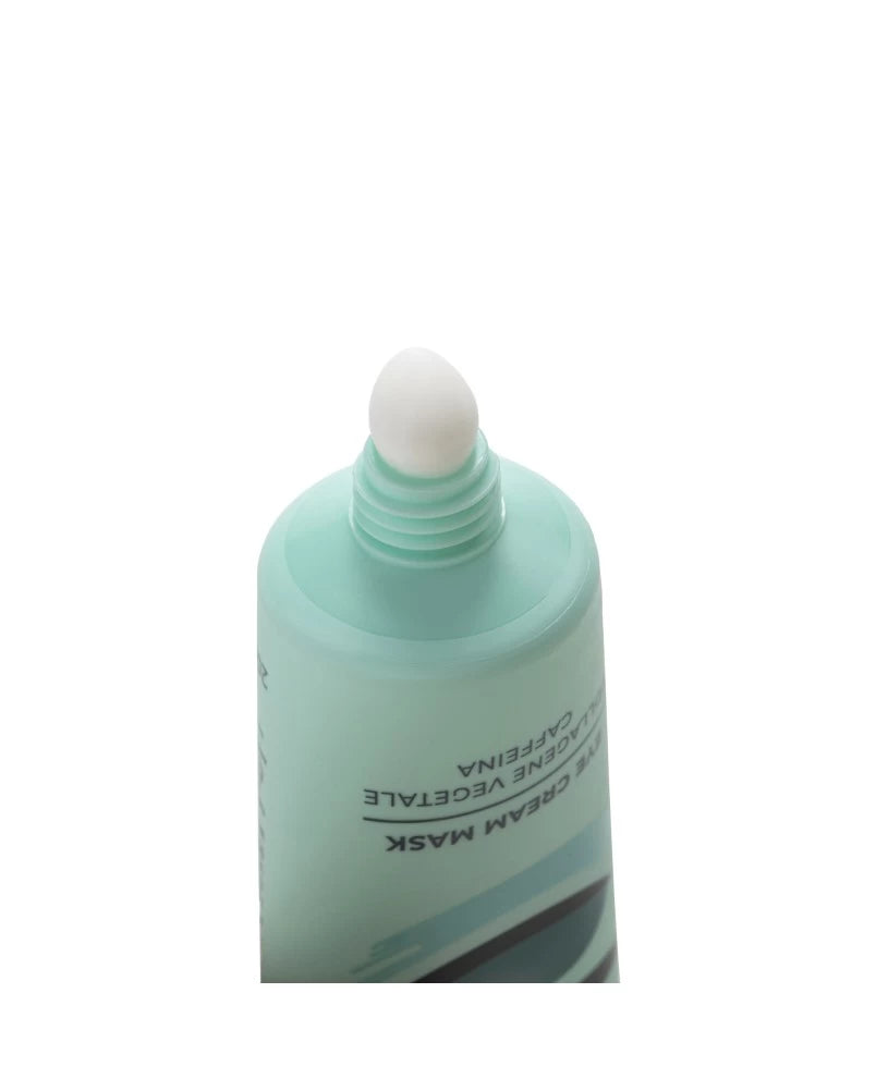 Maschera per il contorno occhi ideale per apportare tono e luminosità. Contiene Collagene vegetale, combinazione di biopolimeri idrolizzati e gomma di acacia che donano idratazione e tonicità; Caffeina la cui azione sul microcircolo aiuta a ridurre borse e occhiaie ed estratti di Edera e Tarassaco ideali per diminuire il gonfiore.